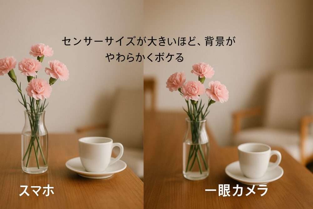 スマホは被写界深度が深く、すべてがくっきり写ります。
